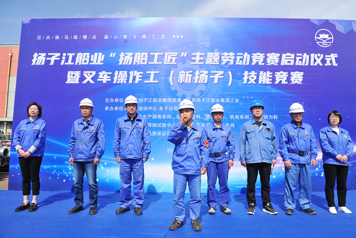 4月24日,揚子江船業(yè)“揚船工匠”主題勞動競賽啟動儀式暨叉車操作工(新?lián)P子)技能競賽在新?lián)P子造船舉行。集團(tuán)副總經(jīng)理兼新?lián)P子造船總經(jīng)理杜成忠,新?lián)P子造船副總經(jīng)理倪榮,新?lián)P子造船總經(jīng)理助理茆宏兆,揚子鑫福造船總經(jīng)理助理劉銀君,集團(tuán)技術(shù)中心技術(shù)部部長蔣才平,新?lián)P子質(zhì)量管理部部長唐松,揚子鑫福造船工會主席陳紅,揚子三井造船工會主席司凌鈺,以及各造船子公司相關(guān)承辦車間部門領(lǐng)導(dǎo)、參賽職工代表和裁判員代表等參加啟動儀式。