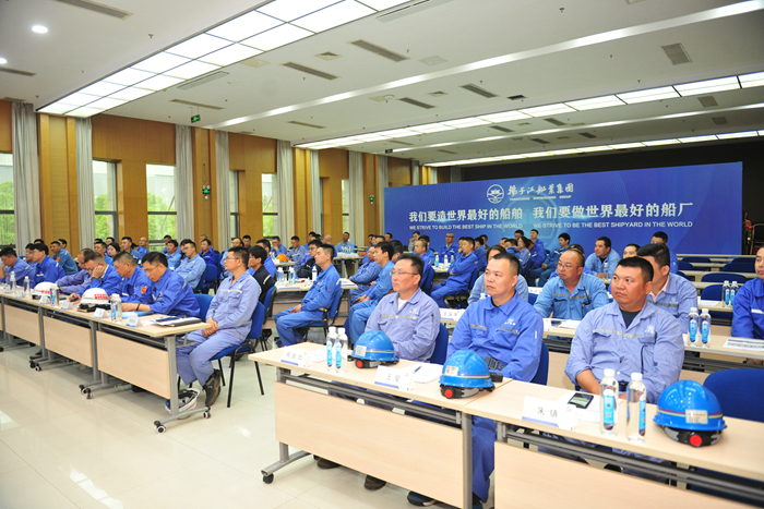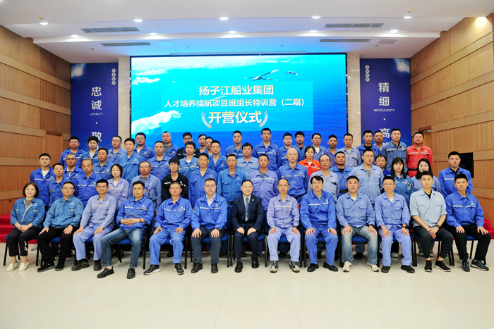5月21日,揚(yáng)子江船業(yè)集團(tuán)人才培養(yǎng)續(xù)航項(xiàng)目第二期基本工班組長(zhǎng)特訓(xùn)營(yíng)開(kāi)營(yíng)儀式在新?lián)P子行政大樓多功能廳順利舉行。新?lián)P子造船副總經(jīng)理倪榮,新?lián)P子造船總經(jīng)理助理兼集團(tuán)綜合管理部部長(zhǎng)茆宏兆,揚(yáng)子鑫福造船總經(jīng)理助理劉銀君,以及各子公司生產(chǎn)管理部、質(zhì)量管理部、綜合管理?xiàng)l線的相關(guān)領(lǐng)導(dǎo)、特訓(xùn)營(yíng)所有學(xué)員、行動(dòng)導(dǎo)師,共計(jì)82人參加了開(kāi)營(yíng)儀式。