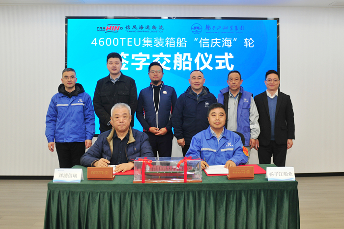 隨著“信慶?!陛喌慕桓叮壹瘓F(tuán)為信風(fēng)海運(yùn)建造的兩艘4600TEU系列集裝箱船項(xiàng)目順利收官。交船儀式上雙方喜悅地回顧了合作歷程,表示通過此次項(xiàng)目的成功合作,雙方不僅實(shí)現(xiàn)了既定目標(biāo),還進(jìn)一步加深了互信和理解。展望未來,雙方一致認(rèn)為,將繼續(xù)保持密切溝通,關(guān)注行業(yè)發(fā)展動(dòng)向,把握發(fā)展機(jī)遇,并在未來合適的時(shí)機(jī)尋求更多合作機(jī)會(huì),共同推動(dòng)雙方業(yè)務(wù)的進(jìn)一步發(fā)展與共贏。