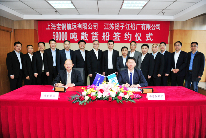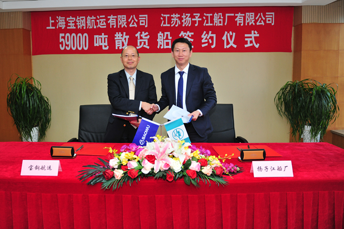 ▲11月13日下午,我集團下屬江蘇揚子江船廠有限公司與上海寶鋼航運有限公司簽署了2艘59000噸散貨船新造船合同。集團董事長任樂天先生,寶鋼資源(國際)有限公司董事長張典波先生,寶鋼資源(國際)有限公司總裁陸克從先生,我集團副總經理宋書明先生,副總經理杜成忠先生,以及來自寶鋼資源、寶武原料、寶鋼航運、中聯(lián)海運、上海船舶研究設計院、中國船級社等領導和重要嘉賓出席簽約儀式。