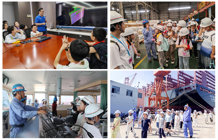最讓孩子們興奮的是登船參觀環(huán)節(jié)。踏上甲板,孩子們好奇地四處打量,駕駛室、船員生活區(qū)、集控室……每一個區(qū)域都吸引著他們的目光。在駕控臺前,手掌著舵,推著車鐘,孩子們仿佛自己也變成了一名操縱萬噸巨輪的船長,心中充滿了激動與自豪。