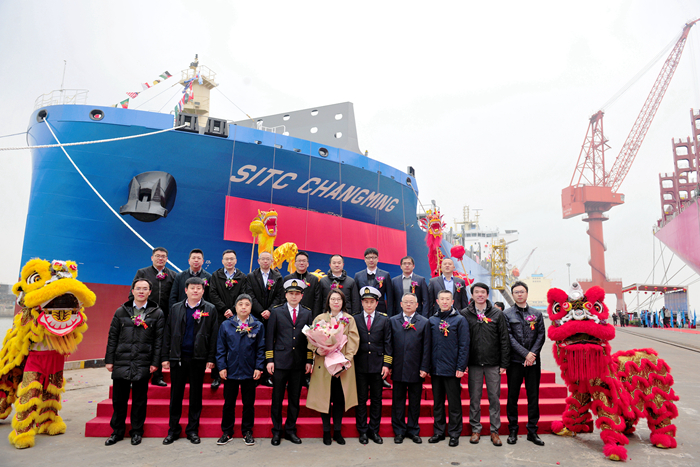 During the naming ceremony, representatives of the shipownerand the shipyard signed the delivery documents in the presence of all parties'representatives. "SITC CHANGMING" marks the 32nd new ship built anddelivered by our group for Haifeng International in recent years.