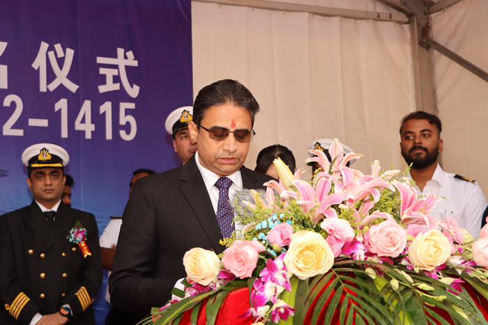 On 29th February, Yangzi Mitsui Shipbuilding and Chellship, the ship owner, held a grand naming and delivery ceremony for the new vessel. Mrs Shreenidhi Dongre, the godmother, and Mr. Deepak Dongre, the representative of Chellship, performed a traditional Indian blessing ceremony for the new vessel, blessing the new vessel with the protection of Ganesha, the elephant-headed god, and Varuna, the god of Indian water.