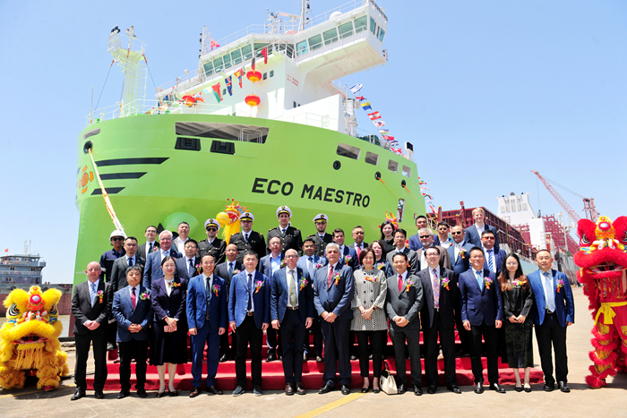 On May 16, our group and X-Press Feeders jointly held a grand delivery ceremony for the new vessel. At the ceremony, Mr. Shmuel Yoskovitz, CEO of X-Press Feeders, and Mr. Ren Letian, Chairman of our Group, delivered speeches on behalf of the shipowner and the shipyard respectively. Both parties reviewed the inception of their friendly cooperation, the breakthroughs achieved in their respective industries, and exchanged updates on the progress of ongoing projects. They expressed their hope to continue strengthening strategic docking, deepening exchanges and cooperation, leveraging their respective advantages and continuously improving the quality of cooperation on the basis of stabilizing the existing cooperative relationship.