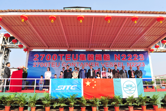 10月30日上午,我集團(tuán)為海豐國(guó)際建造的第四艘2700TEU集裝箱船“海豐立誠(chéng)”輪命名儀式在新?lián)P子造船舉行。海豐國(guó)際董事局主席楊紹鵬先生攜夫人,海豐國(guó)際非執(zhí)行董事楊馨女士,日本船級(jí)社(NK)中國(guó)區(qū)總裁東史彥先生,以及我集團(tuán)董事長(zhǎng)任樂(lè)天先生、集團(tuán)副總經(jīng)理杜成忠先生、副總經(jīng)理張濤先生等相關(guān)領(lǐng)導(dǎo)和嘉賓出席了儀式。