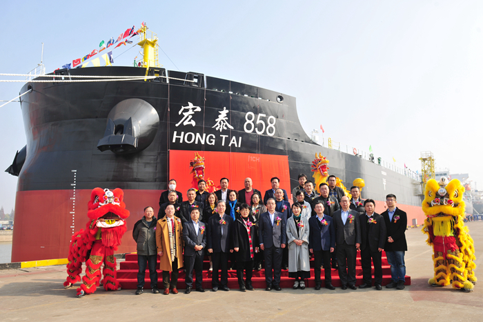 “宏泰858”輪于2021年1月18日點(diǎn)火開(kāi)工,5月26日搭載,11月5日實(shí)現(xiàn)出塢,11月底完成試航。建造期間盡管面臨全球新冠肺炎疫情和能耗“雙控”影響,“宏泰858”輪仍然較合同交期提前了70天順利交付。在多方代表的共同見(jiàn)證下,上海港祿航運(yùn)有限公司總經(jīng)理韓治東先生,我集團(tuán)副總經(jīng)理杜成忠先生、集團(tuán)副總經(jīng)理張濤先生分別代表各方簽署交船文件。