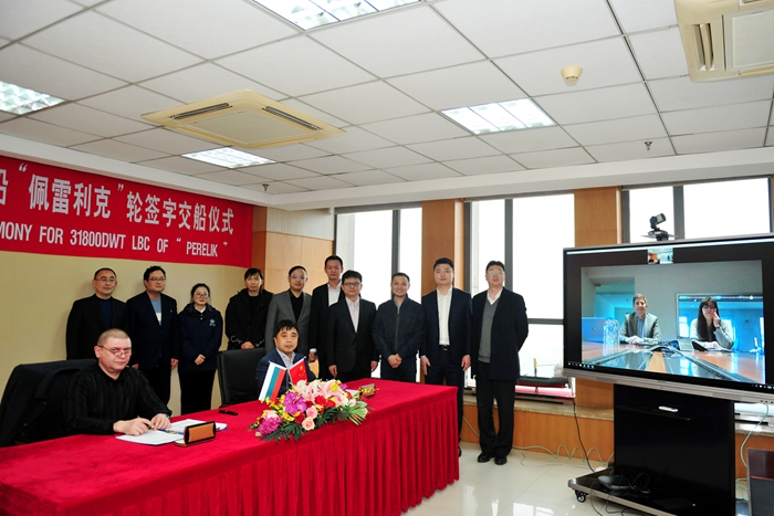 在本項目上,中信保提供了出口信用擔保,中國銀行在交船前提供了還款保函支持,在交船時為船東提供了融資支持。中信保聯(lián)合中國銀行,充分發(fā)揮政策性職能,利用專業(yè)的風險管理能力,為我集團保駕護航,順利為境外船東提交了一批批高質(zhì)量船舶。當日下午,通過視頻會議形式舉辦交船簽字儀式。保加利亞國家航運公司執(zhí)行董事亞歷山大·卡爾契夫先生、我集團總經(jīng)理助理吉宏飛先生以及中信保、中國銀行、克拉克森等相關(guān)嘉賓共同見證下,船東現(xiàn)場辦經(jīng)理Veselin Yanev先生與我集團副總經(jīng)理杜成忠先生分別代表雙方簽署交船文件。 “PERELIK”(佩雷利克)輪順利交付,擇吉日將揚帆啟航。