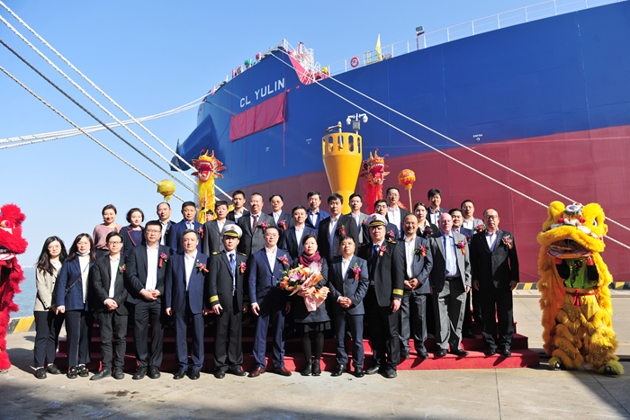 命名人金平女士將新船命名為“CL YULIN”(國銀 玉林)輪,并擲香檳禮,祝福新船在未來的航程中,乘風破浪,平安啟歸,為船東以及客戶帶來更高效和更具經(jīng)濟價值的服務。該船是我集團為國銀租賃建造的208000DWT散貨船10艘系列船中的第8艘。參加儀式的領(lǐng)導和嘉賓在青島遠洋華林公司總經(jīng)理劉思成先生以及“CL YULIN”(國銀 玉林)輪首任船長、輪機長的陪同下參觀了新船并與船員進行了交流。
