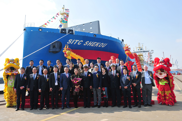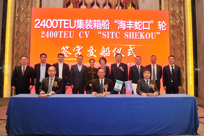 當(dāng)日,在各方代表的共同見證下,海豐航運(yùn)集團(tuán)副總裁肖森元先生,我集團(tuán)副總經(jīng)理杜成忠先生,集團(tuán)副總經(jīng)理張濤先生分別代表各方簽署交船文件,“SITC SHEKOU”(海豐蛇口)輪順利交付。至此,我集團(tuán)為海豐國際建造的該批次6艘2400TEU集裝箱船項(xiàng)目完美收官!