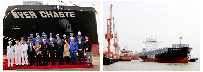 3月30日上午,我集團(tuán)為日本PSM公司建造的第二艘1800TEU箱船在新?lián)P子造船順利命名交付。在儀式現(xiàn)場(chǎng),通過視頻連線方式,愛媛銀行常務(wù)董事MUNEO TSUBOUCHI先生將新船命名為“EVER CHASTE”輪,船東現(xiàn)場(chǎng)辦經(jīng)理Masahiro Shimizu先生,為新輪砍纜擲香檳,為新船首航祈福。中午時(shí)分,鞭炮齊鳴、禮炮歡送,“EVER CHASTE”輪開啟首航。至此,我集團(tuán)為日本PSM公司建造的兩艘1800TEU集裝箱船,完美收官。