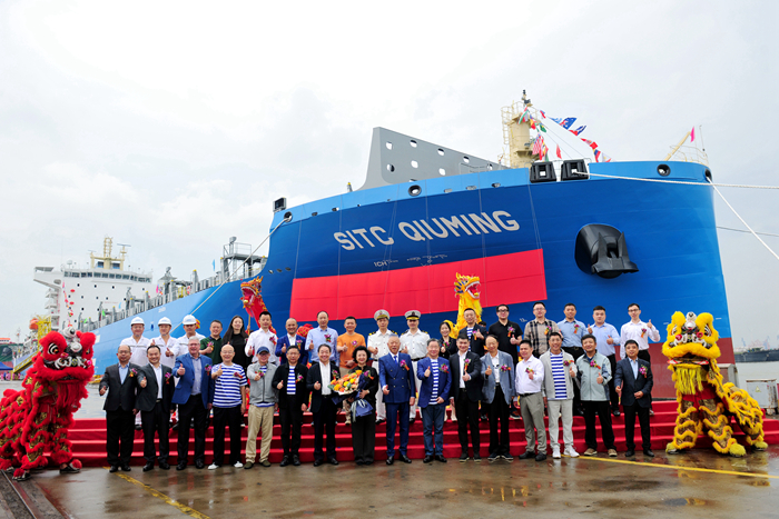 儀式上,楊紹鵬先生代表船東致辭,任樂天先生代表船廠致辭。雙方共同回顧了合作經(jīng)歷以及未來(lái)繼續(xù)加強(qiáng)攜手的意愿,期待為社會(huì)、為客戶創(chuàng)造更高的價(jià)值。自2017年雙方初次接洽以來(lái),海豐國(guó)際總計(jì)在我集團(tuán)下單達(dá)36艘新造船項(xiàng)目。該艘新船交付后,截止目前我司已共為海豐國(guó)際交付24艘新造船,計(jì)劃年內(nèi)還將交付5艘新船。寧高寧先生將新船命名為“SITC QIUMING”(海豐秋明)輪,程虹女士為新船砍纜并擲香檳禮,王玉鎖先生寄予祝福。嘉賓們共同祝福新船一帆風(fēng)順,班班滿載。