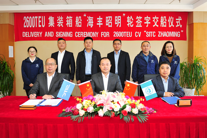 10月20日上午,我集團(tuán)新?lián)P子造船為海豐國(guó)際建造的第25艘新造船“SITC ZHAOMING”(海豐昭明)輪交付。上海海豐船舶管理中心總經(jīng)理李瑞民先生,我集團(tuán)副總經(jīng)理杜成忠先生,副總經(jīng)理張濤先生分別代表各方簽署交船文件。