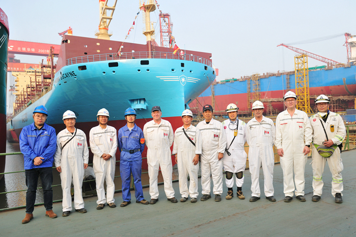 新?lián)P子為L(zhǎng)EPTA建造的3500TEU集裝箱船“MAERSK BISCAYNE”輪交付離廠