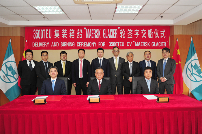 5月31日上午,我集團新?lián)P子造船向船東日本LEPTA交付一艘3500TEU集裝箱船“MAERSK GLACIER”輪。在相關(guān)方的共同見證下,船東和船廠代表在新?lián)P子造船會議室簽署交船文件。