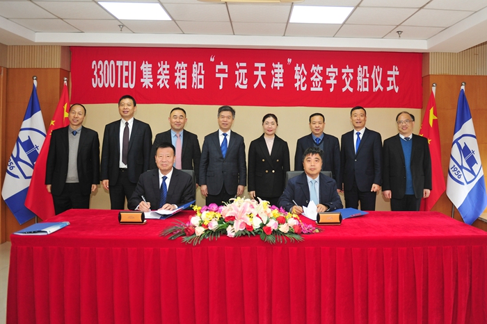 “寧遠天津”輪于2023年2月點火開工。在寧波遠洋、上海船舶設(shè)計院、雙希監(jiān)造組、CCS船級社以及船廠上下員工等各方的通力合作和相互成就下,歷時10個月建成交付。命名當(dāng)天,在各方嘉賓的共同見證下,寧波遠洋黨委委員、副總經(jīng)理陳加挺先生與我集團副總經(jīng)理兼新?lián)P子造船總經(jīng)理杜成忠先生分別代表雙方簽署交船文件。